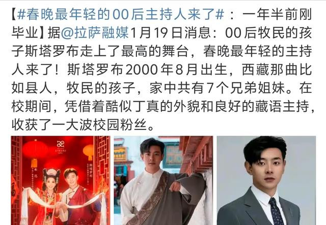 而最惊奇的是和他搭配的主持人,竟然是一位才25岁的00后的西藏小伙斯塔罗布。